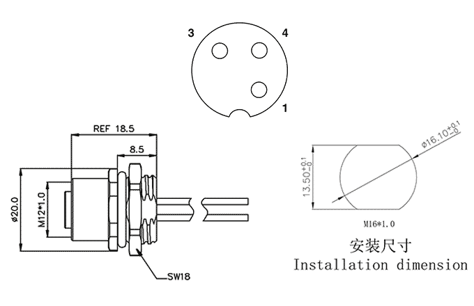 M12 Panel Mounting Connector